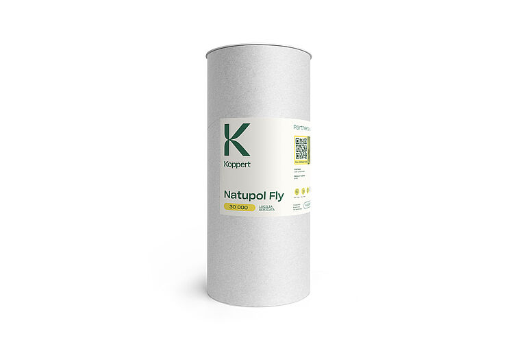 Natupol Fly besteht aus einer Pappröhre mit Kunststoffdeckel. Die Fliegenpuppen sind mit Sägemehl vermischt, um die Wärmeentwicklung zu minimieren und die Feuchtigkeits- und Geruchsaufnahme zu erhöhen. Die zweckmäßige Verpackung bietet zudem: