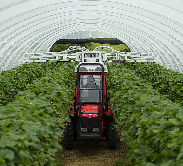 "Wir haben erst vor kurzem mit dem Anbau von Beerenfrüchten begonnen und haben jetzt 15 Hektar mit Erdbeeren bepflanzt. Hier haben wir Natutec Drive installiert. Wir haben das Gerät auf unsere Heizungsrohre montiert und können damit Thripex und Chrysopa sehr genau verteilen", erklärt Angel. "Die beiden Arme des Geräts entfalten sich über der Kultur, um die lebenden Produkte genau und gleichmäßig über das Blattwerk der Erdbeerpflanzen zu blasen, ohne die Nützlinge schädigen. Wir sind mit dieser Ausbringung sehr zufrieden."