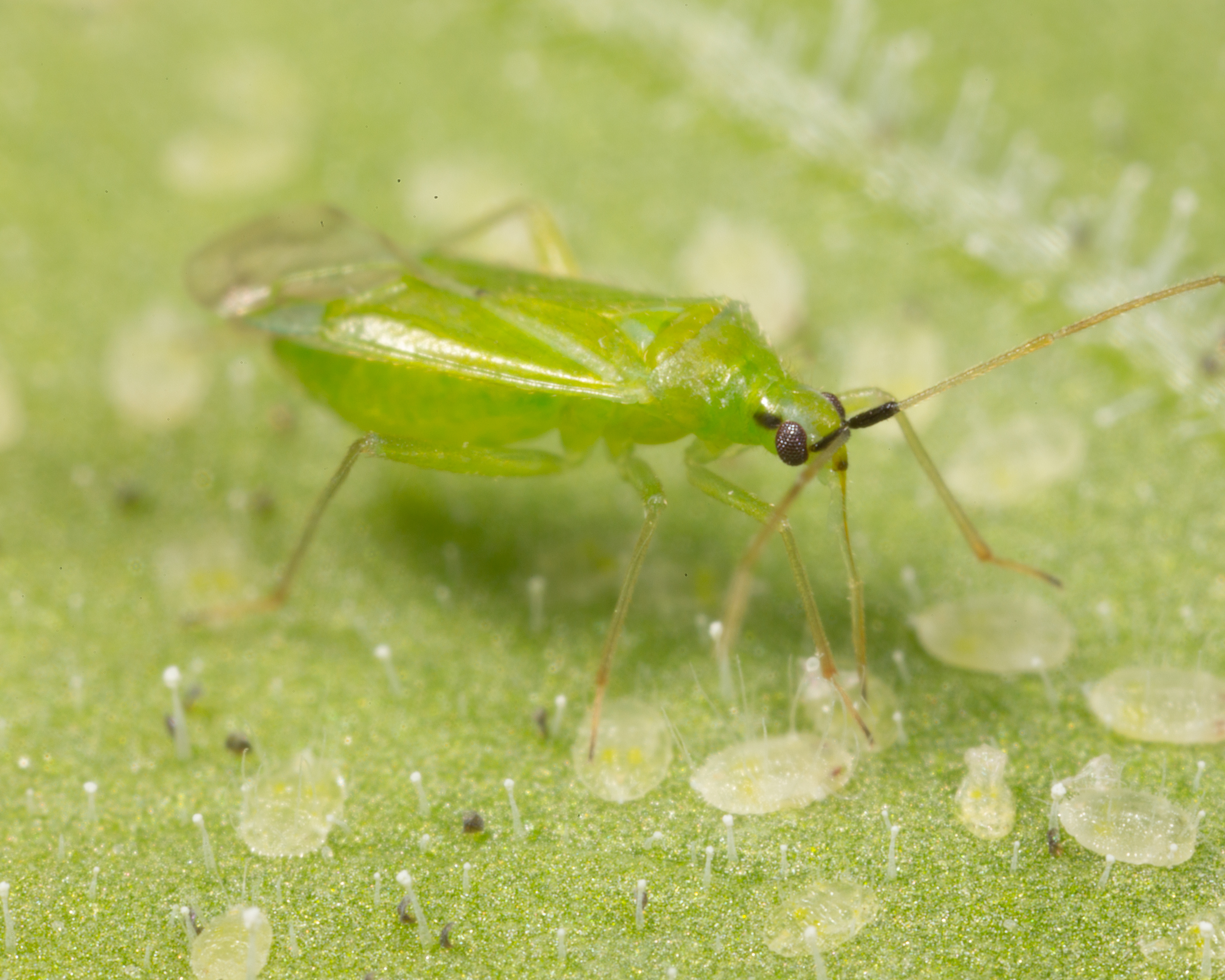 Die Raubwanze Macrolophus pygmaeus (Mirical) ist im Tomatenanbau eine wichtige Säule zur Bekämpfung der Weißen Fliege. Adulte und Nymphen bekämpfen alle Stadien der Gewächshaus-Weiße Fliege (Trialeurodes vaporariorum) und Baumwoll-Weiße Fliege (Bemisia tabaci). Vollinsekten und Nymphen begeben sich aktiv auf die Suche nach ihrer Beute und saugen sie aus.