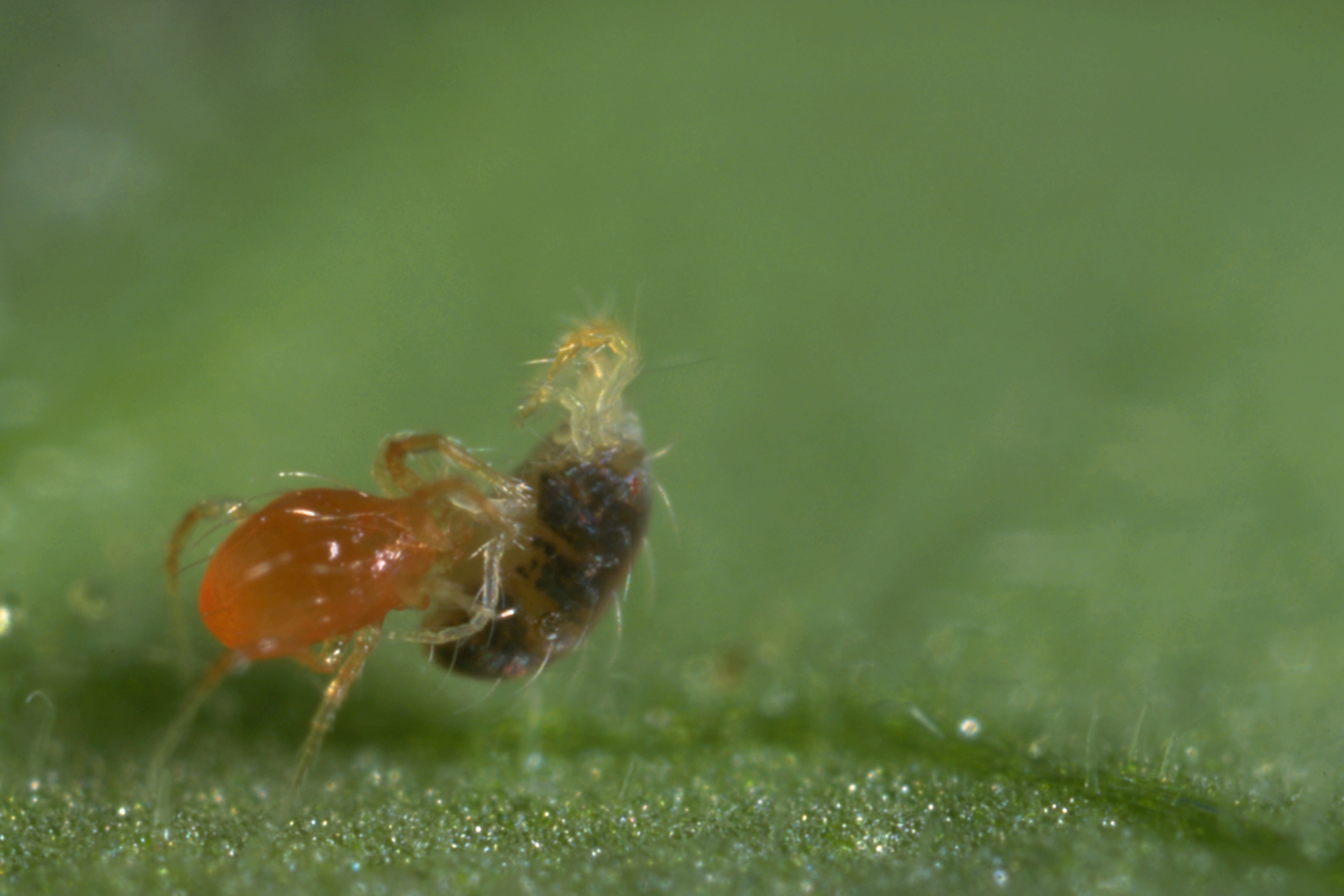 Zu den Verpackungmethoden gehören heute auch Anzuchttüten, in denen sich Raubmilben wie Amblyseius swirskii entwickeln und vermehren können, wenn sie in die Kulturpflanzen eingebracht werden. Diese Tüten ermöglichen eine langsame Freisetzung der Milben und bieten ihnen auf ihrer Reise Schutz vor Beschädigungen. So werden diese biologischen Lösungen gegen schädliche Thripse und Weiße Fliegen noch wirksamer und arbeitssparender. Die in den Tüten enthaltenen Futtermilben sorgen dafür, dass die Raubmilben auf dem Weg zu ihrem Ziel Nahrung erhalten. Die Zahl der Raubmilben, die aus der Tüte kommen, ist oft fünfmal so hoch als zu Beginn", erklärt René.