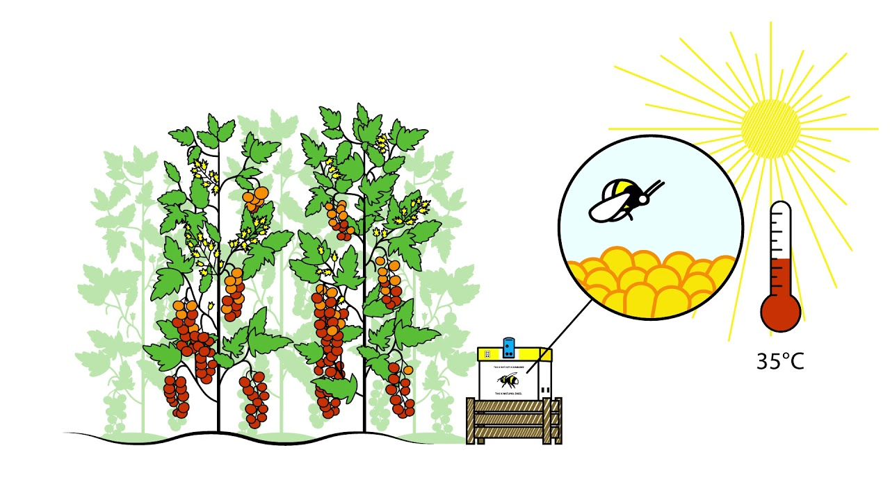 Bei hohen Temperaturen ventilieren Hummeln sehr stark, um die Temperatur im Nistkasten zu regulieren. In dieser Zeit sammeln sie kein Futter bzw. bestäuben dann auch nicht. Für eine kurze Zeit ist dies kein Problem, aber bei anhaltend warmem Wetter kann es zu viel kleineren Hummeln und/oder Kolonien kommen.