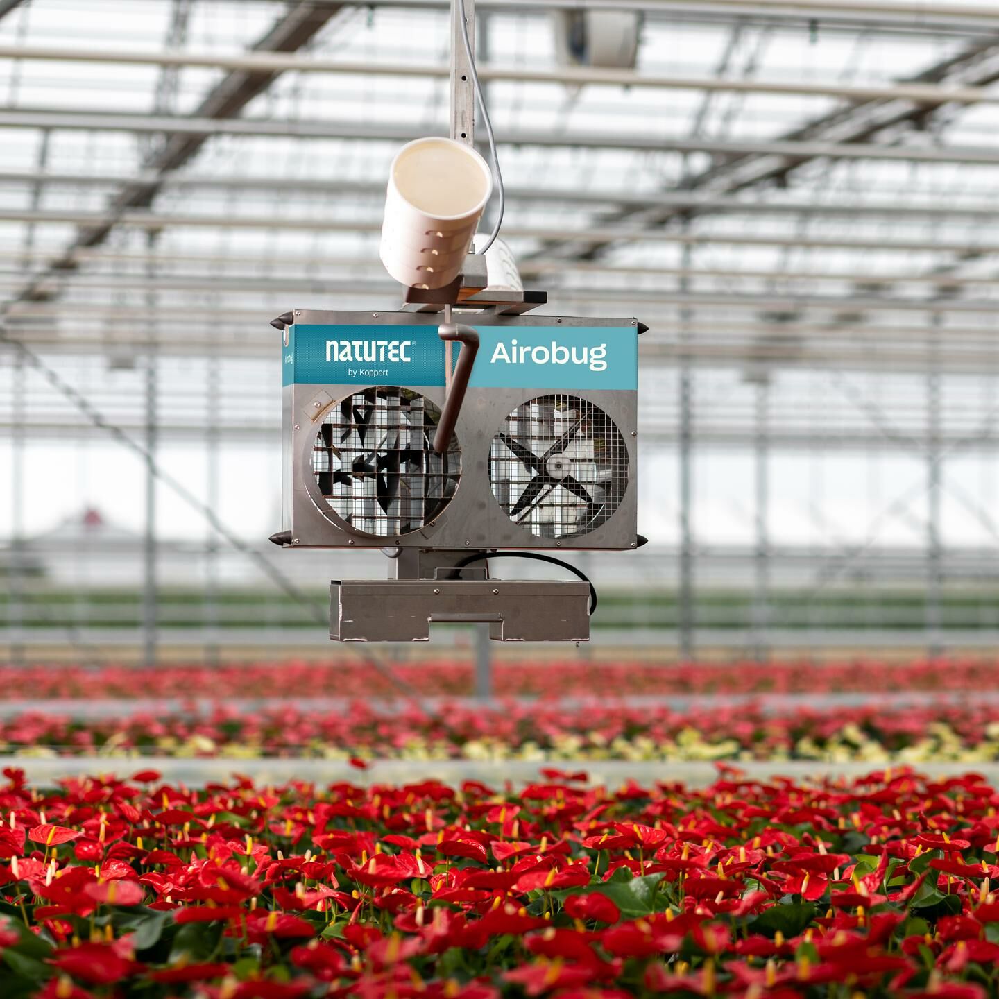 Verwenden Sie den Natutec Airobug für die Verteilung von Nützlingen in der Kultur. Der Airobug kann für große Flächen und die Verteilung über ganze Kulturen in High-Tech-Gewächshäusern mit internen Transportsystemen verwendet werden.