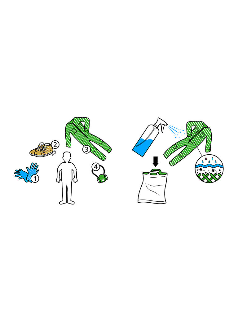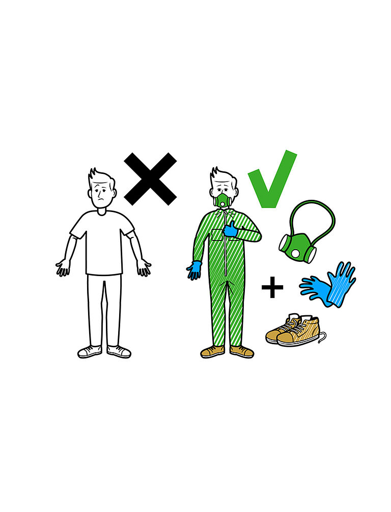 Wenn die Gefahr einer Exposition über die Haut besteht, empfehlen wir Ihnen, Schutzkleidung zu tragen, die die Arme und Beine bedeckt (z. B. einen Einweg-Overall). Außerdem raten wir Ihnen, Ihre Hände mit Handschuhe zu schützen.