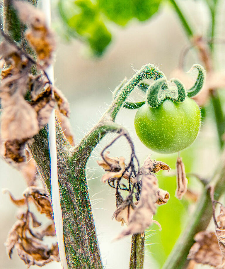 Die Symptome erscheinen in der Regel 2-3 Wochen nach der Infektion und können den Ertrag und die Qualität von Kulturpflanzen wie Tomaten erheblich beeinträchtigen.
