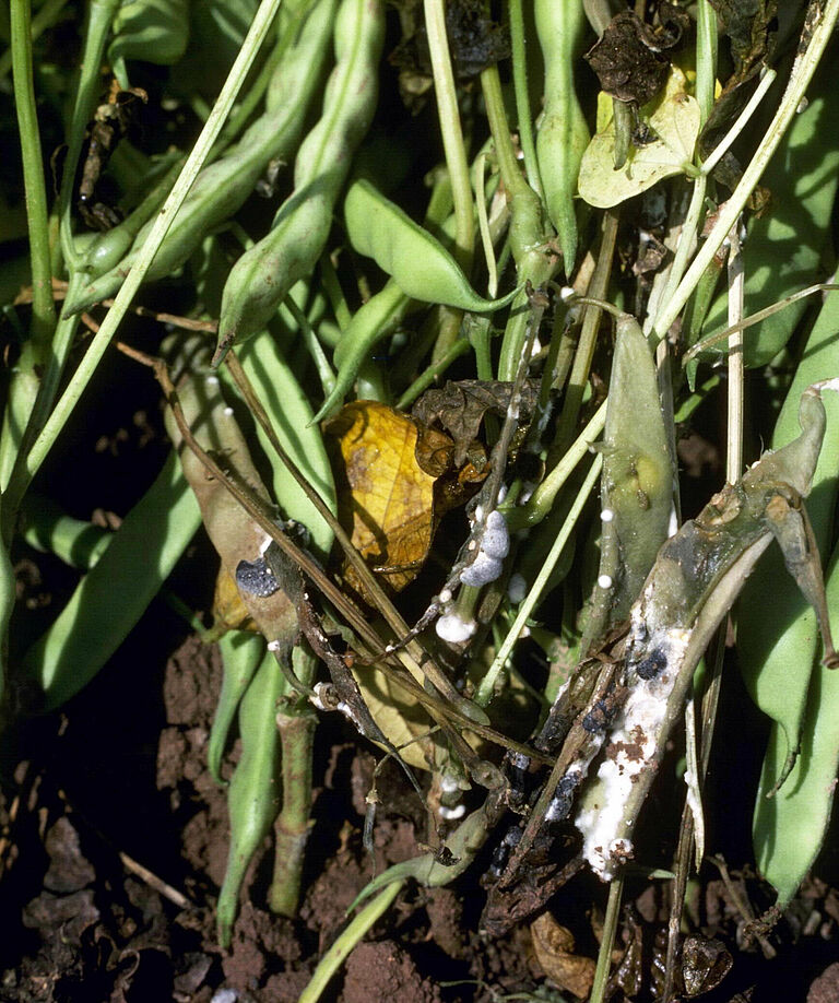 Die Sklerotien keimen direkt und bilden Myzel oder produzieren Apothecien (Fruchtkörper), die Ascosporen enthalten. Das Myzel befällt die Stängelbasis und die Wurzeln, während die Ascosporen die oberirdischen Pflanzenteile infizieren. In Gewächshäusern wird normalerweise nur Myzel durch die keimenden Sklerotien produziert. Der Pilz wächst recht schnell im Inneren der Pflanze und tötet die Wirtszellen ab. Auf dem infizierten Pflanzengewebe entwickelt sich weißes, flauschiges Myzel mit neuen dunklen Sklerotien. Der Pilz infiziert auch Samen und Knollen und schafft so eine Infektionsquelle für die nächste Kultur. Die Ausbreitung auf benachbarte Pflanzen erfolgt durch Myzelwachstum.