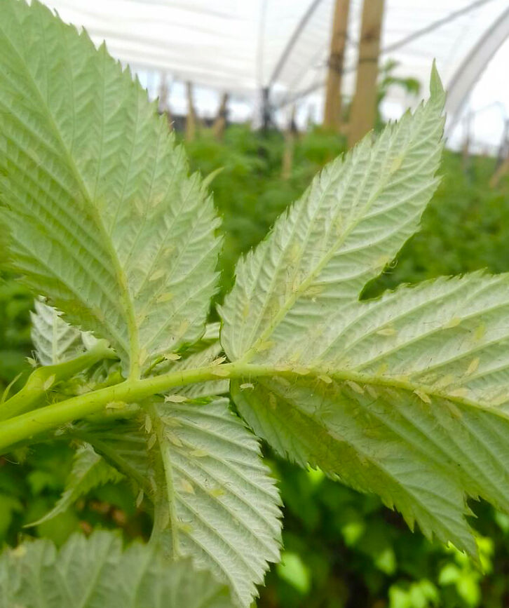 Nymphen und adulte Tiere entziehen der Pflanze Nährstoffe und stören das Gleichgewicht der Wachstumshormone. Dadurch wird das Wachstum der Pflanze verzögert, was zu deformierten Blättern oder, wenn der Befall früh in der Saison eintritt, zum Absterben von Jungpflanzen führt. Verlangsamtes Wachstum und starker Blattverlust reduzieren den Ertrag.