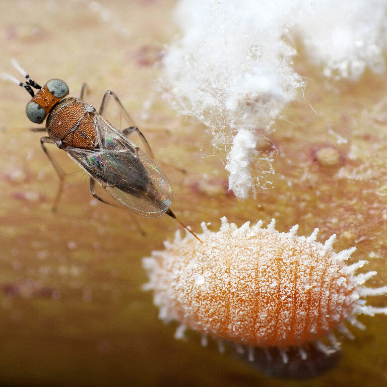 Bekämpfung von Wollläusen mit der parasitischen Wespe Anagyrus vladimiri