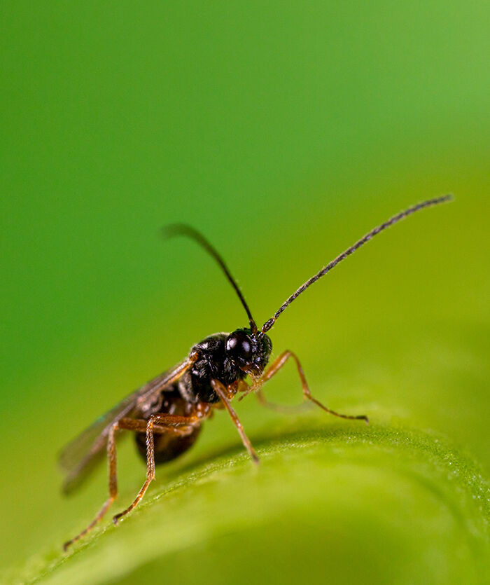 Die parasitische Wespe Dacnusa sibirica ist bei Koppert als Minusa erhältlich.