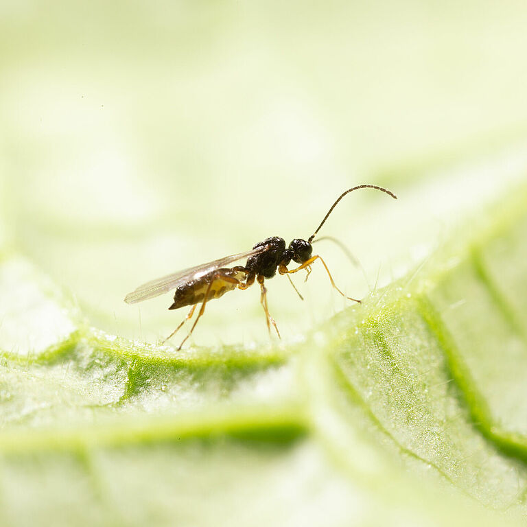 Blattlausbekämpfung mit der parasitischen Wespe Praon volucre